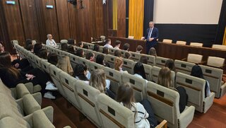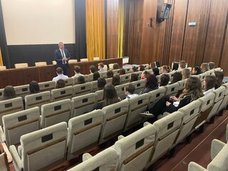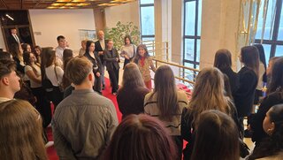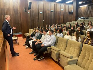 Dňa 4. februára 2026 sa 36 žiakov a dvaja pedagógovia našej školy zúčastnili exkurzie do Národnej rady Slovenskej republiky. Po bezpečnostnej prehliadke nás zamestnanec NR SR previedol priestormi budovy a pútavým výkladom podal základné informácie o Národnej rade. Nasledovala diskusia s poslancom NR SR a zároveň predsedom Trenčianskeho samosprávneho kraja, pánom Ing. Jaroslavom Baškom v priestoroch kinosály. Nahliadnuť sme mohli aj do rokovacej miestnosti NR SR, kde sme z balkóna sledovali schôdzu NR SR a prítomní poslanci nás privítali milým potleskom.